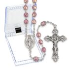 7mm Pink Alabaster Luster Glass Bead Rosary, Boxed